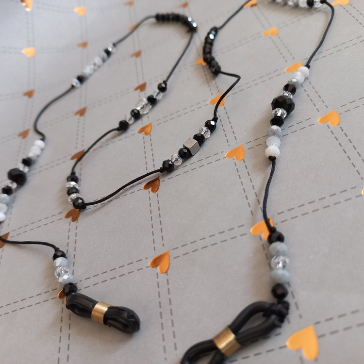 بند عینک مهره ای ترکیب مشکی و طوسی کد ۱۲۶۵
