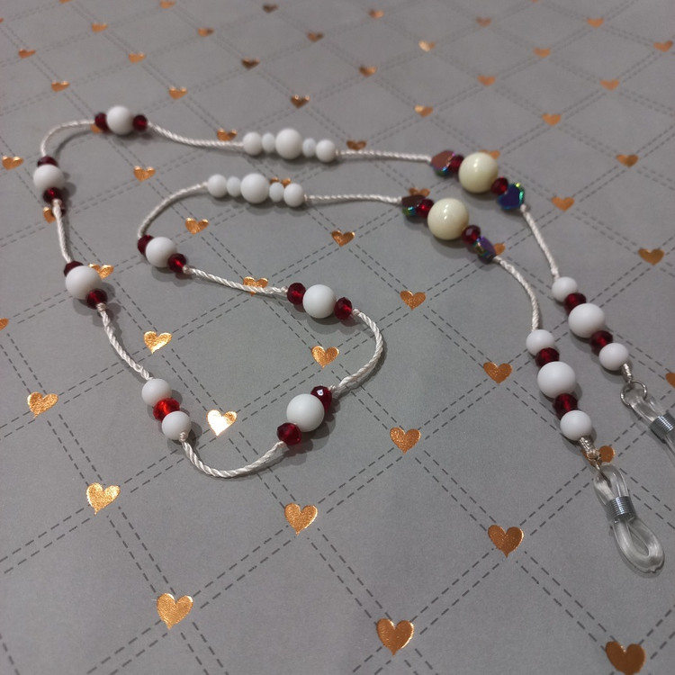 بند عینک مهره ای سفید و قرمز کد ۱۲۷۲