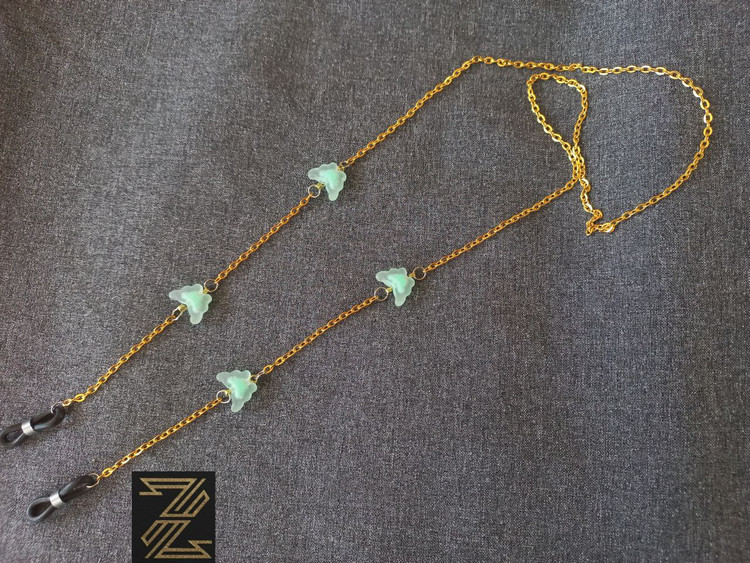 بند عینک ساخته شده با زنجیر ریز طلایی رنگ ثابت با پروانه رنگی