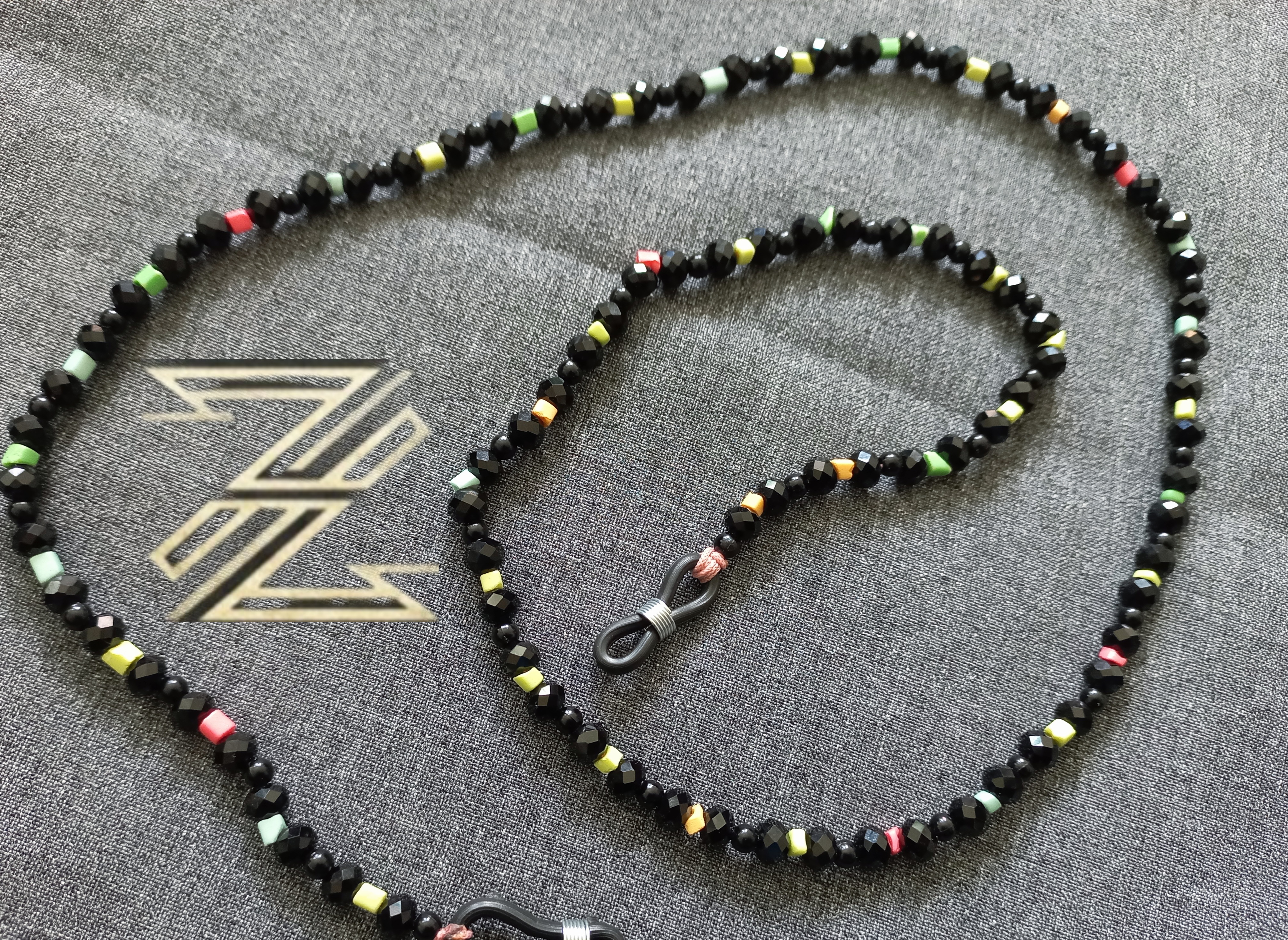بند عینک ساخته شده از مهره های مکعب رنگی و کریستال